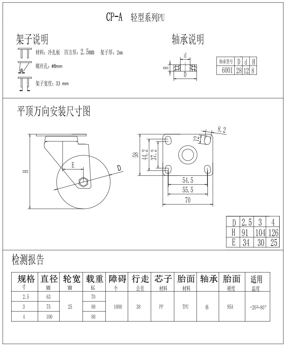 輕型腳輪-CP-A3-2521萬向TPU