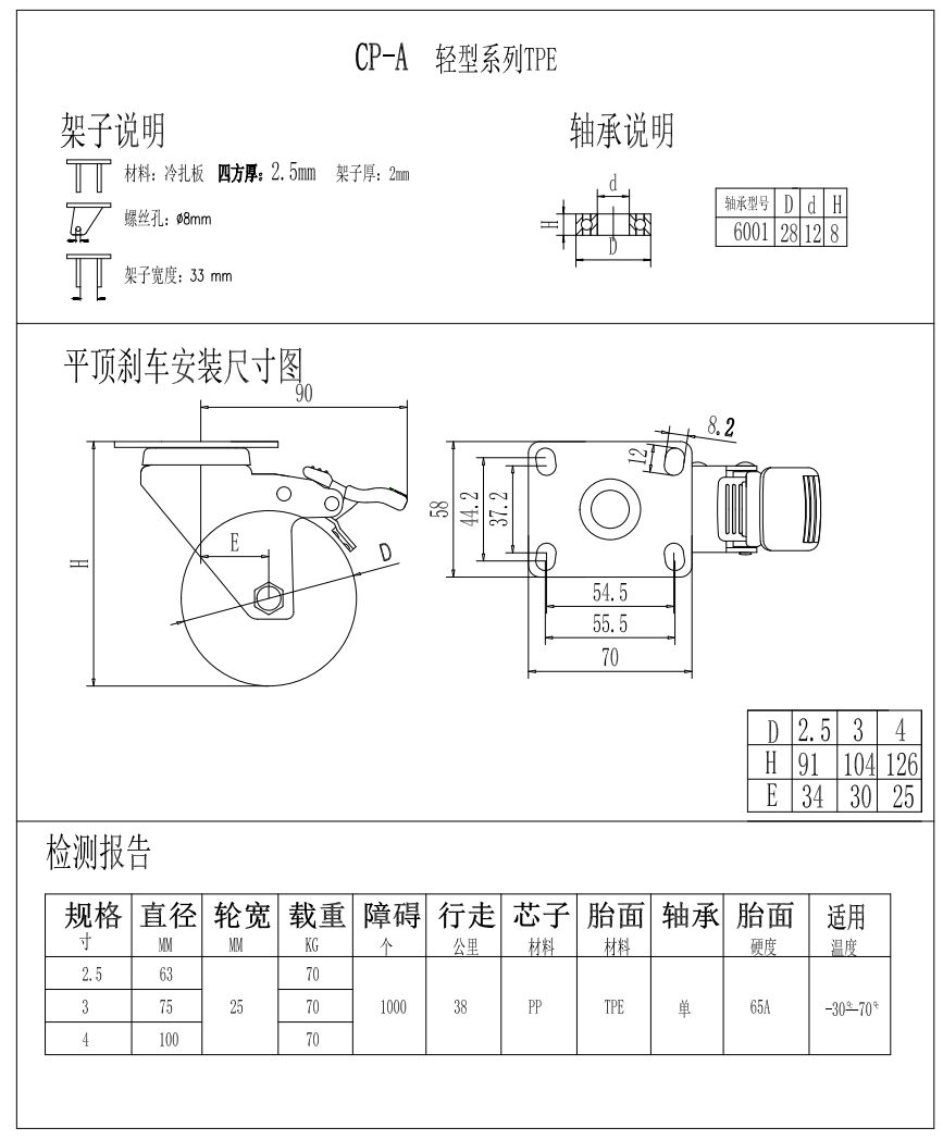 輕型腳輪-CP-A2.5-2531萬向剎車TPE