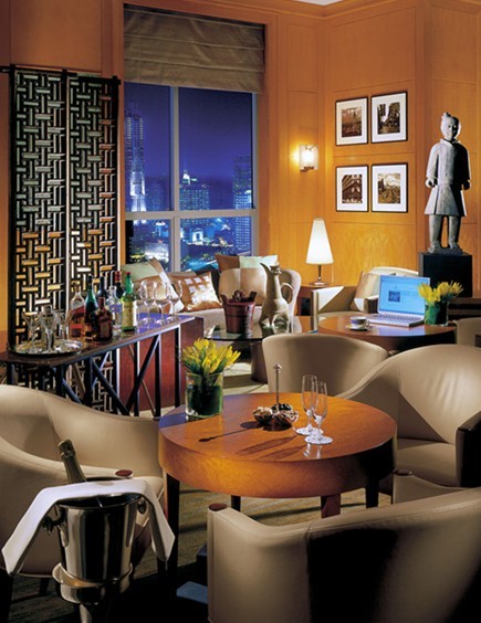 首先迎接客人的是一面由陳年榆木制成的涂漆大門。這扇大門位于兩面墻之間,從地面一直延伸到屋頂,讓人不禁聯(lián)想起中國古代皇宮里的那些氣派莊嚴的宮門。進入其中,紋理優(yōu)美的黑色大理石地板、現(xiàn)代中式家具與中國特色的藝術品,共同營造出了一個讓人身心舒暢、充滿靈動的獨特空間。