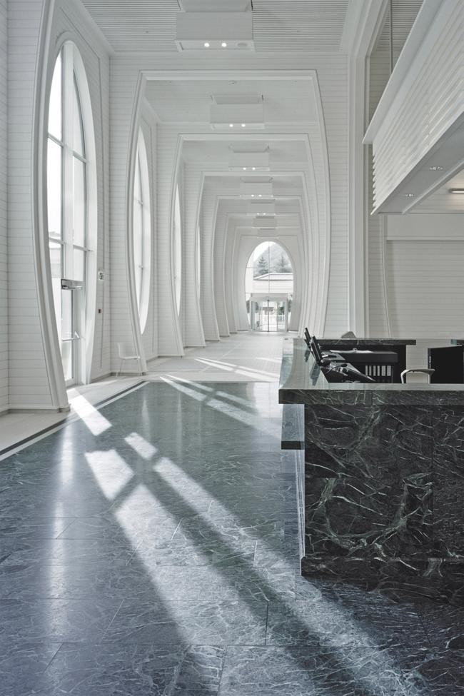 塔米納溫泉浴場被看作是該度假村文化的一個(gè)重要組成,所以業(yè)主方希望這一區(qū)域所蘊(yùn)含的文化和美學(xué)意義能夠?qū)⒄麄€(gè)度假村的品位提升。它需要的是一個(gè)有本土化的表達(dá),既有瑞士的傳統(tǒng)文化,又有波羅的海沿岸風(fēng)情,又是一種儀式化的呈現(xiàn),將對自然的敬畏展現(xiàn)。這些都決定了建筑必須有個(gè)性,但又不是太過夸張前衛(wèi)的表達(dá),這就解釋了為什么建筑的整體風(fēng)格回歸到歷史上早期度假酒店的形態(tài)。